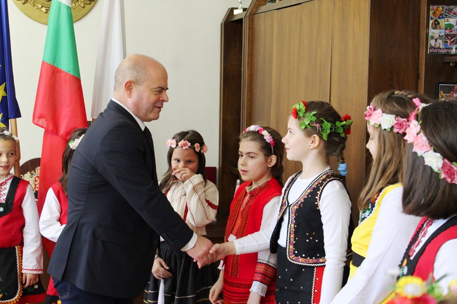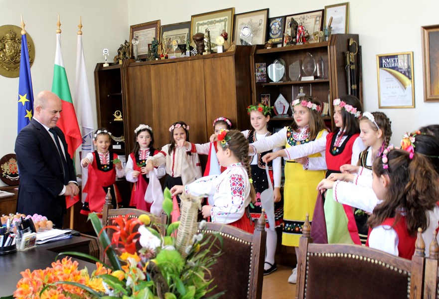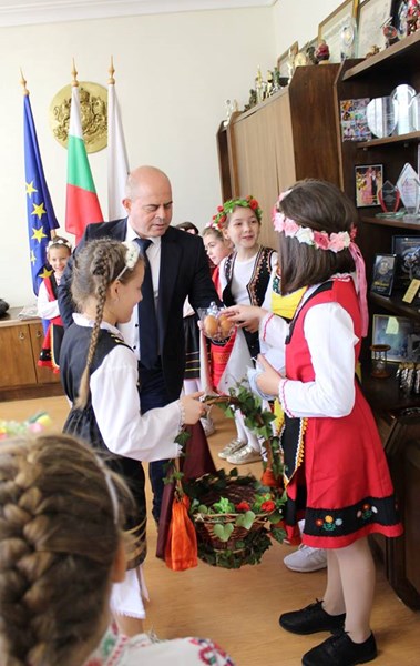Лазарски песни огласиха днес Общината. В навечерието на едни от най-хубавите пролетни празници – Лазаровден и Цветница, кметът на Пламен Стоилов посрещна 12 лазарки от ОУ „Иван Вазов“, придружавани от директорката на училището Теодора Йорданова.