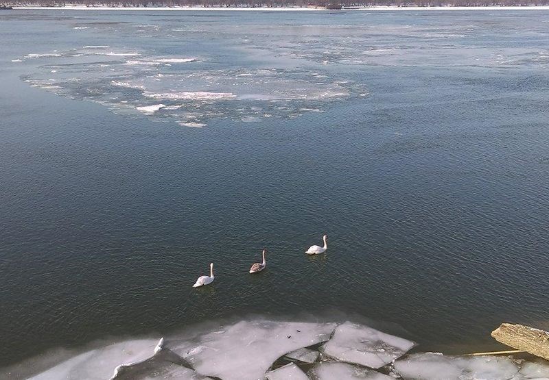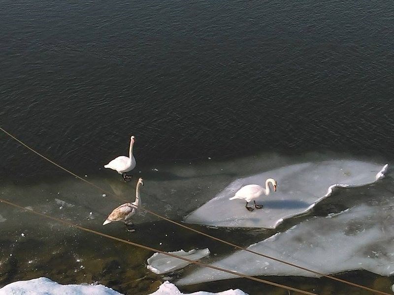 Под кея бяха забелязани три лебеда и един пеликан. Те ходеха важно-важно по ледените блокове в реката и се носеха грациозно по водата, явно в очакване да ги снимат. От време на време и подхвръкваха. Ентусиазирани млади природолюбители решиха, че птиците са пропуснали среднозимното преброяване и сега са дошли да се регистрират в РИОСВ, пише briagnews.bg.
