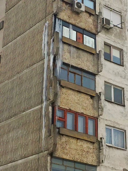 За щастие това е северната страна на блока и едва ли точно днес на -7 градуса ще се откърти, но все някога ще се стопли, нали?!?