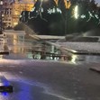 Снимки от ранни зори показват, че се е включила поливната система. При ниските температури през нощта водата е замръзнала и лед покрива всичко наоколо.
