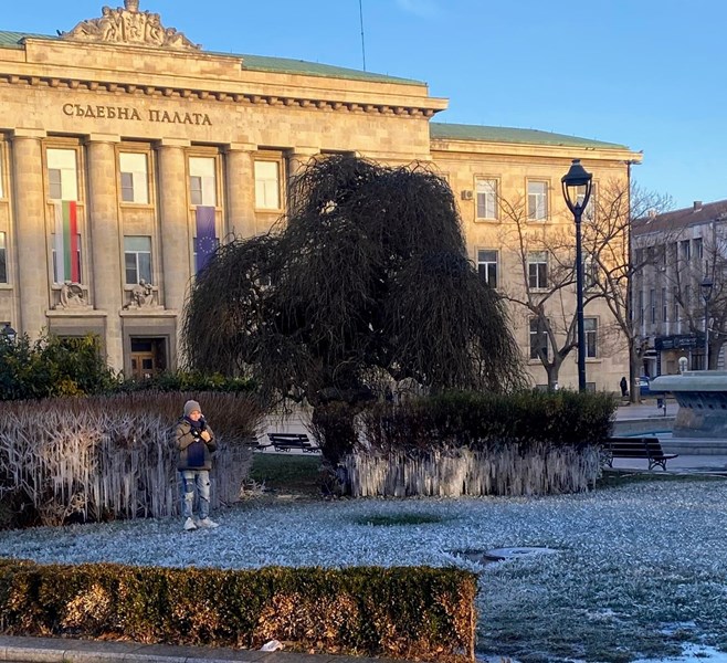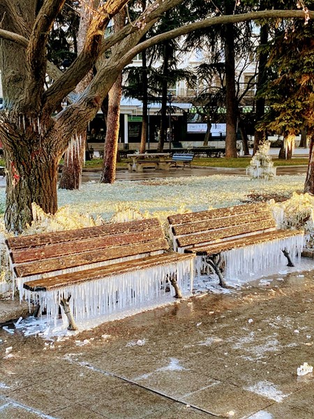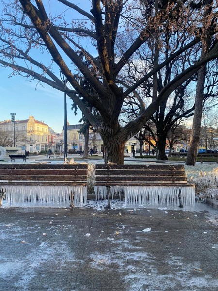 Ледени шушулки по пейките в градския парк и още една безплатна пързалка за русенци.