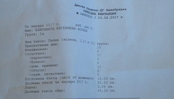 Защо обаче на приходната квитанция, която получаваме при заплащане в градината, постоянната такса продължава да е 10 лв, въпреки че в общата дължима сума са начислени 20?