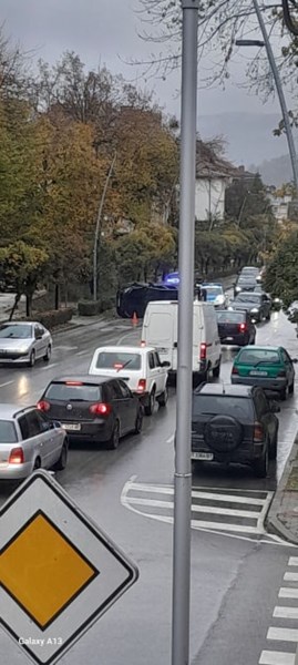 Пътната настилка в града е мокра и хлъзгава, което налага шофьорите да се движат със съобразена скорост и повишено внимание.