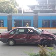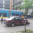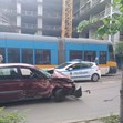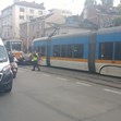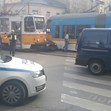 Макар и със затруднения останалите автомобили се движат по натоварения булевард. Пътните полицаи се опитват да измъкнат заклещения между трамваите автомобил, който е почти премазан в предната част.