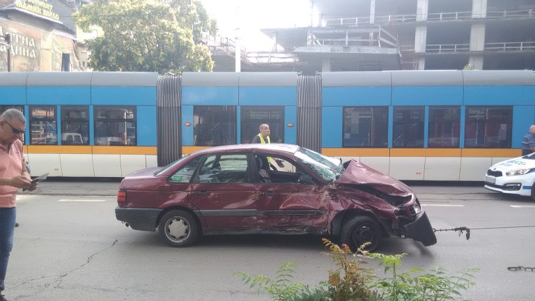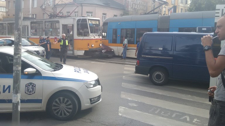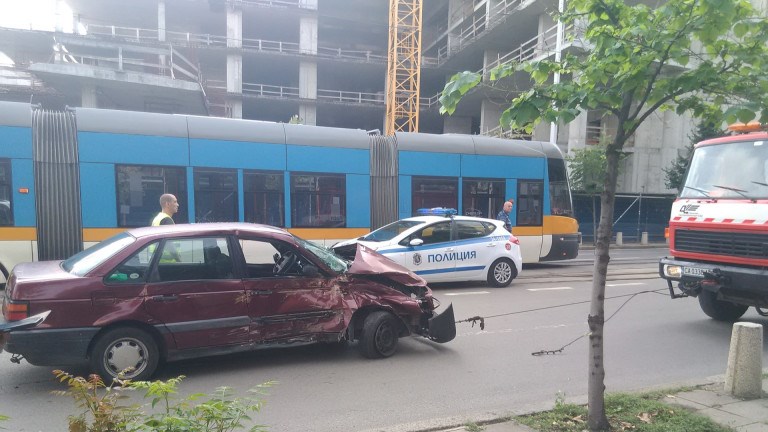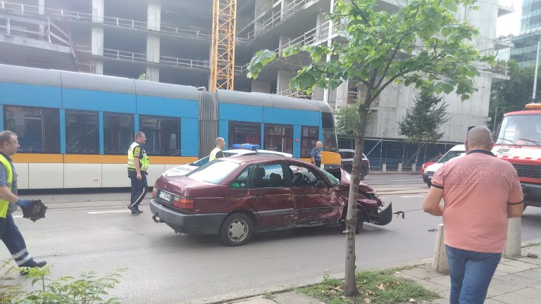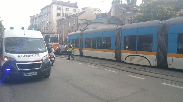 Тежка катастрофа на бул. Христо Ботев в София. Червен Фолксваген се е оказал между два трамвая. На място пристигна и линейка на Спешна помощ. Няколко полицейски коли също са на мястото на инцидента, съобщи News.bg.