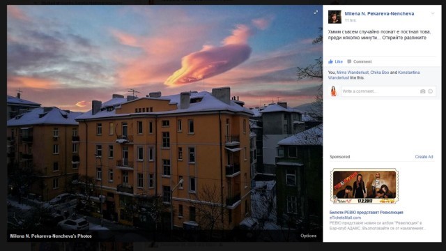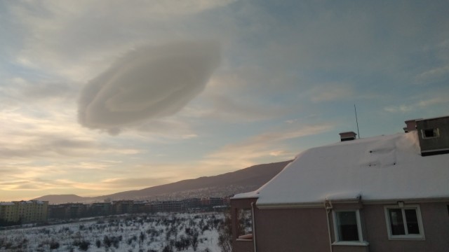 Малко преди залез слънце над София се появи облак, силно наподобяващ образите на летящите чинии, създадени от киноиндустрията.