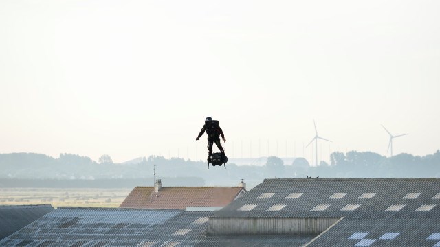 40-годишният французин излетя със своя флайборд от град Сангат на северното френско крайбрежие под бурните аплодисменти на десетки любопитни. 20-минутното му пътуване приключи в град Дувър на южния бряг на Англия.