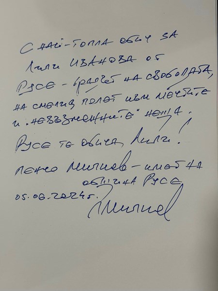 Специални благодарности на г-н Пенчо Милков, кмет на Община Русе, за уважението, подаръците и отличието Златна значка “Русе”!