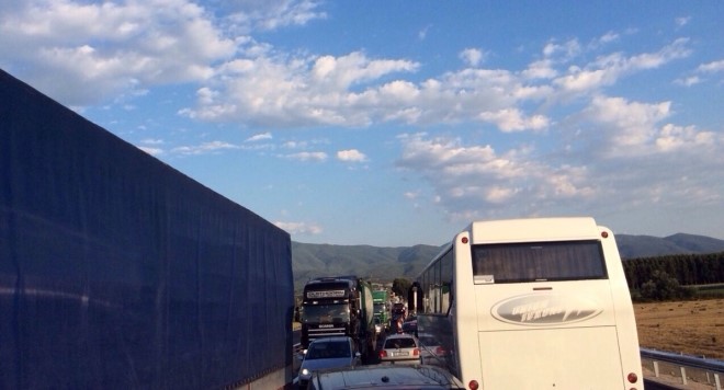 вместо заявеният четирилентов път, ги посрещна няколкокилометрова тапа по „новия двулентов път“,