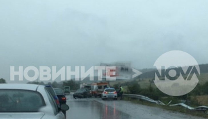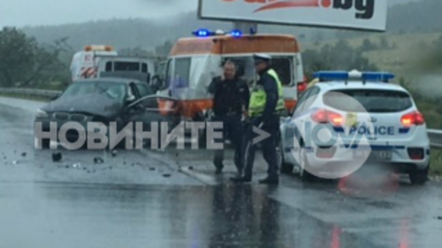Инцидентът стана в посока София. На място е пристигнала линейка, която да окаже помощ, но минути, след като спряла на мястото на катастрофата, в нея се врязал трети автомобил, обясниха от МВР, предаде Нова телевизия.