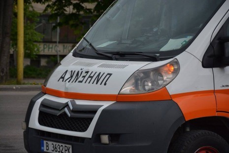 Ударът явно е бил много силен, защото предницата на линейката е смачканa.