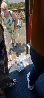 Заради нетърпимата жега в затворените вагони пътниците се опитват да се разхладят по всякакъв начин. Ръководството на влака е осигурило вода за пострадалите, но ситуацията остава критична поради високите температури навън и липсата на вентилация.