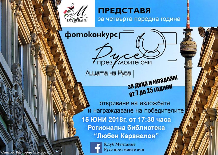 За четвърта поредна година Клуб „Мечтание“ организира фотоконкурс за деца и младежи до 25 години „Русе през моите очи“, а тази година обяви и подтема „Лицата на Русе“. Допуснатите участващи в конкурса снимки са публикувани и могат да бъдат видяни на страницата на конкурса във фейсбук, както и на страницата на Клуб „Мечтание“.