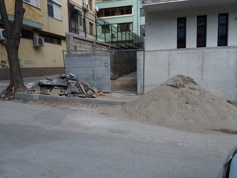 Защо тази улица години наред е без тротоари и защо фирмата, строяща жилищна сграда на ул. Петрич, използва тротоара и платното в строителна площадка?"