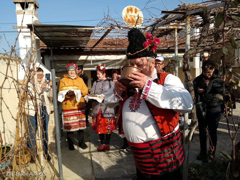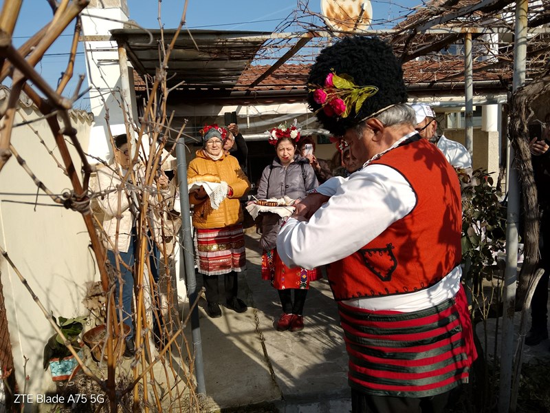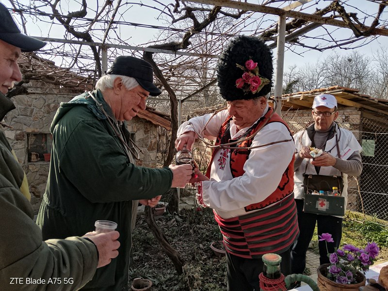 Според традицията, мъжете, които се занимават с лозарство, се отправиха към лозята, носейки със себе си специално подготвена храна – прясно изпечен хляб, пълнена кокошка, туршия и други местни деликатеси. Те донесоха също и бъклица с вино, украсена с чимшир, здравец и червен конец – символи на плодородие и благоденствие.