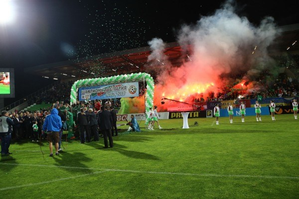 Ръководството и футболистите получиха златните си медали и отпразнуваха титлата пред феновете на "Лудогорец Арена".