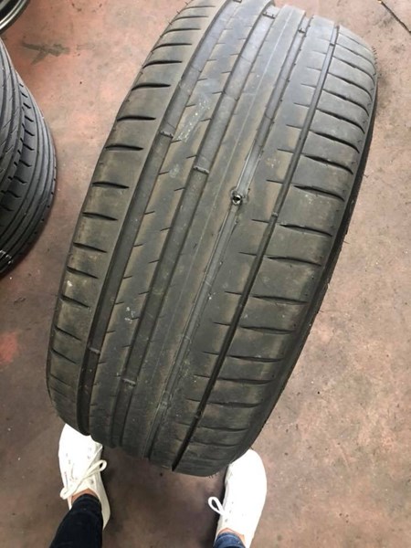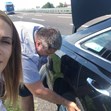 "Да си вземеш новата А8 от Hertz с пирон - екстра и да спукаш гума на магистралата на 40-градусова жега. Първи път смяна на гума и с общи усилия за 10 мин.", написа русокосата хубавица във Фейсбук.