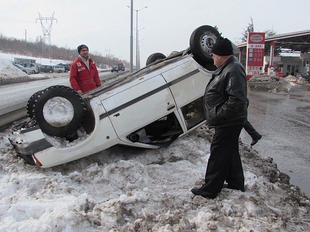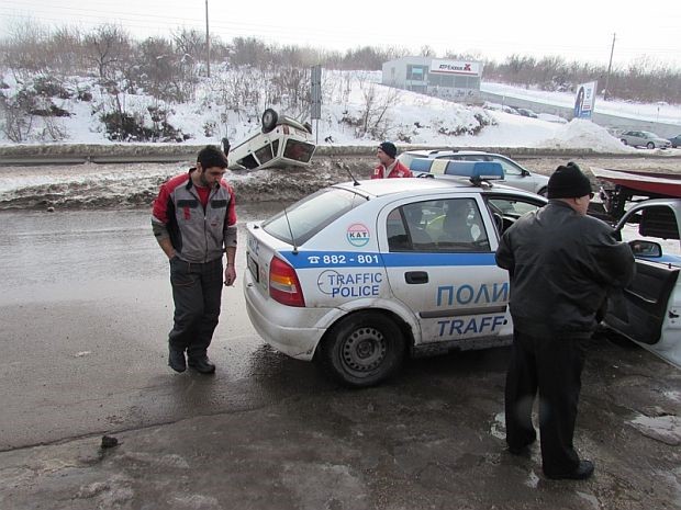 Колата е паднала върху разделителната мантинела, шофьорът е оцелял, предаде БГНЕС.