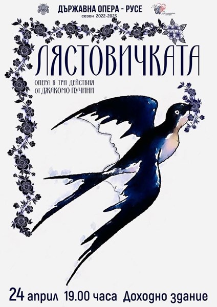 На 24 април, понеделник, от 19:00 часа в Доходното здание, очаквайте едно романтично завръщане на операта “Лястовичката” от Джакомо Пучини!