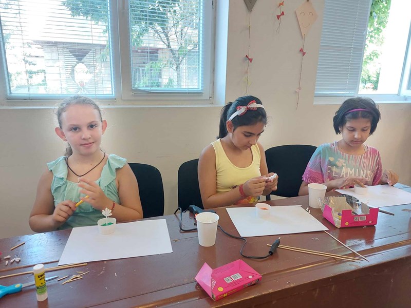 След първото занятие от лятната занималня в Новград децата си тръгнаха с красиви цветя. Повечето от сувенирите са изработени от картонени чаши. Така малките палавници получиха и нагледан урок по опазване на околната среда.