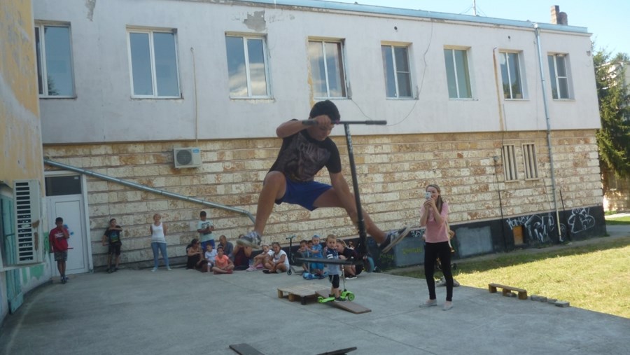 „Каране на тротинетки с трикове“ е първото събитие, което официално събра децата от село Николово от началото на лятната ваканция.