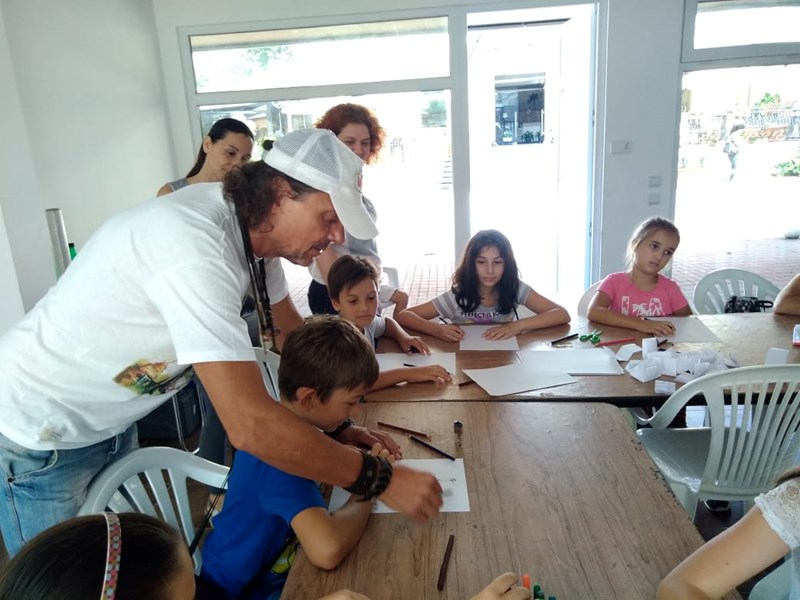 Децата от ваканционната инициатива „Лято в музея“ рисуваха днес с художника Огнян Балканджиев.