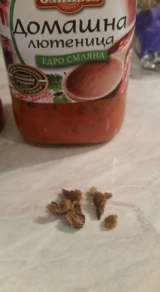 Мръвка с неизвестен произход намери в купешки буркан с лютеница шокирана студентка.