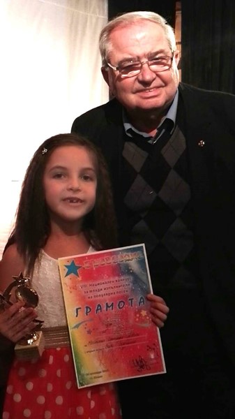 С най-високото отличие – първа награда, се завърна 7-годишната Магдалена Георгиева от вокално студио за поп и джаз „Икономов” при Възрожденско читалище „Зора-1866 г.”, с вокален педагог Вили Икономов.