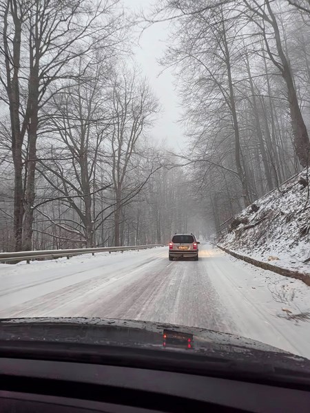 Много шофьори публикуват снимки от зимната обстановка и отправят предупреждения към останалите участници в движението за наличието на заледени участъци и гъста мъгла в района.