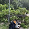 Дървото се стоварило с трясък, на пейката още стоят чантите им и другият багаж