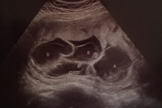 Когато дошло времето на първия ултразвук, настъпила истинска изненада. Двамата дори и не предполагали какво ги очаква, когато лекарят им показал нещо наистина рядко. Кайли била бременна не с едно, не дори с две, а с цели четири бебета.