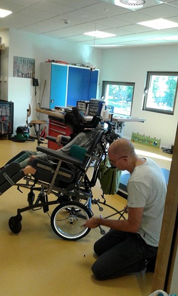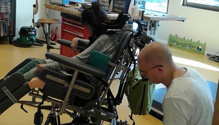 Запознавам ви с поредната , оборотна, количка на щерка ми. Три дни по няколко часа за нея, за дъщеря ми!- българската бежанка, се гъзурчиха ерготерапевт рехабилитатор, техник- зяпат в един монитор с рентгеновите прелести на сколиозата й преди и след имплантите, въртят някъв шублер по таз-маз, стави, сухожилия…и сглобяват и разглобяват , колани през таза, каишки зад където трябва…-докато й натаманят жизнеутвърждаващото помощно средство.