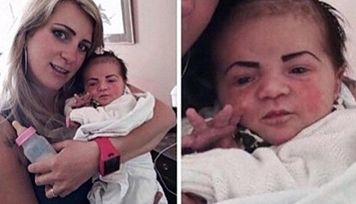 Млада майка, предизвика възмущение и множество критики като направи перманентни вежди на бебето си. Причината за абсурдната й постъпка е,че жената искала детето да изглежда точно като нея.