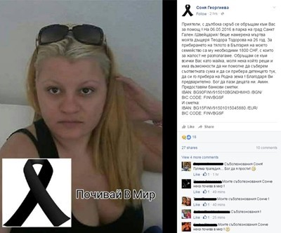 "Приятели, с дълбока скръб се обръщам към Вас за помощ ! На 06.05.2016 в парка на град Санкт Гален /Швейцария/ беше намерена мъртва моята дъщеря Теодора Тодорова на 26 год.