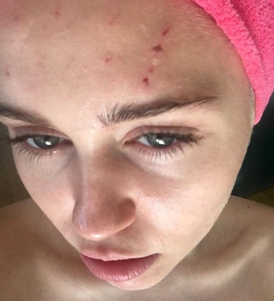 23-годишната знаменитост показа кървавите наранявания на челото си и следите от котешките нокти по кожата й, пише БЛИЦ.