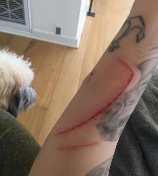 Тя сподели и снимки с окървавения си скалп и дългите следи от нокти по горната част на татуираната й ръка.