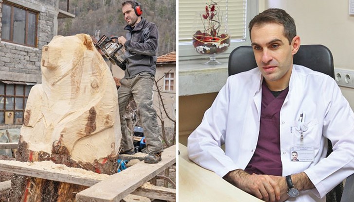 А за съботите и неделите, когато д-р Марангозов прави поредната си фигура с моторния трион и резачката или с длетата и инструментите някоя резба, мирисът на дърво го стъписва, затваря очи и усеща различната вселена на Родопите.