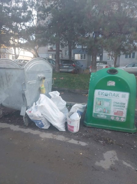 Жители на блок "Чайковски" са снимали как майстори изхвърлят строителни отпадъци в контейнерите, намиращи се на локалното платно на булевард "Липник".