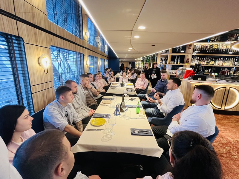 Бъдещите готвачи от Професионална гимназия по туризъм "Иван П. Павлов" - Русе получиха уникалната възможност да се докоснат до майсторството на професионалисти от най-високо ниво. На 21 март 2025 година в ресторанта на Кораб "София" се проведе специална среща между топ готвачи от HELL'S KITCHEN и абитуриентите от специалностите "Кетъринг" и "Производство на кулинарни изделия и напитки".