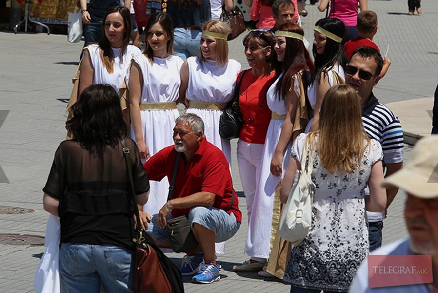 Това заяви пред македонската телевизия "Телма" Анджела Арсовска - едно от момичетата, които дефилират в центъра на Скопие в "антично облекло".