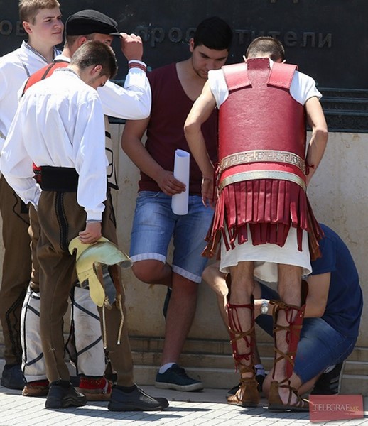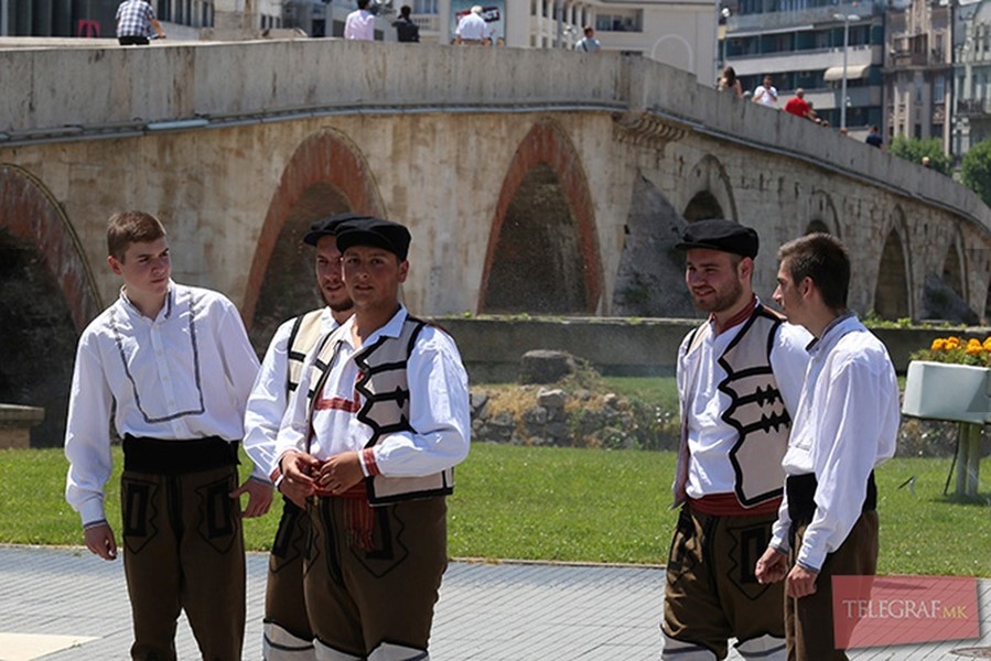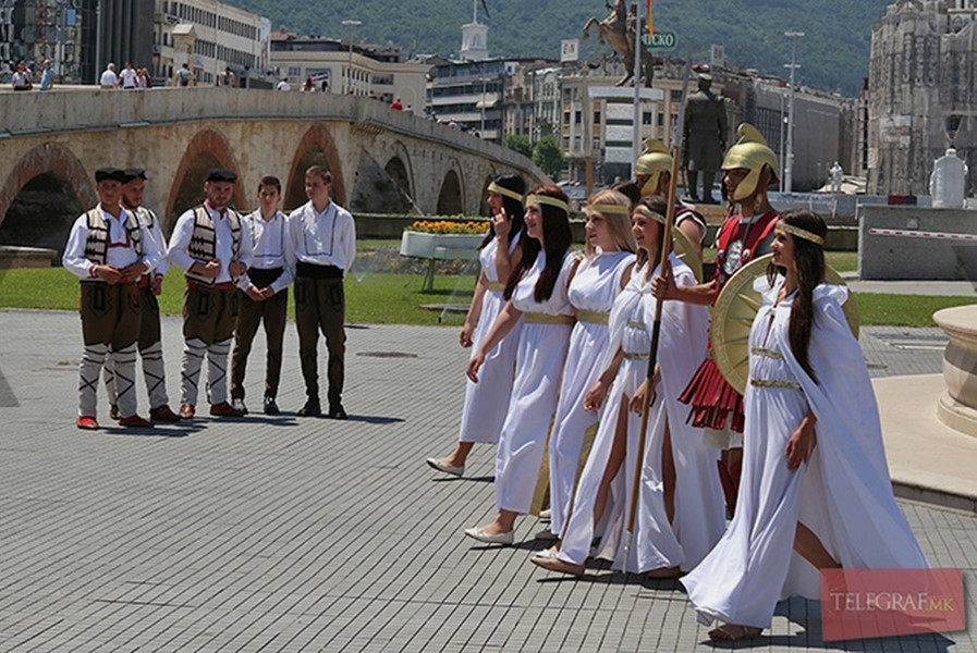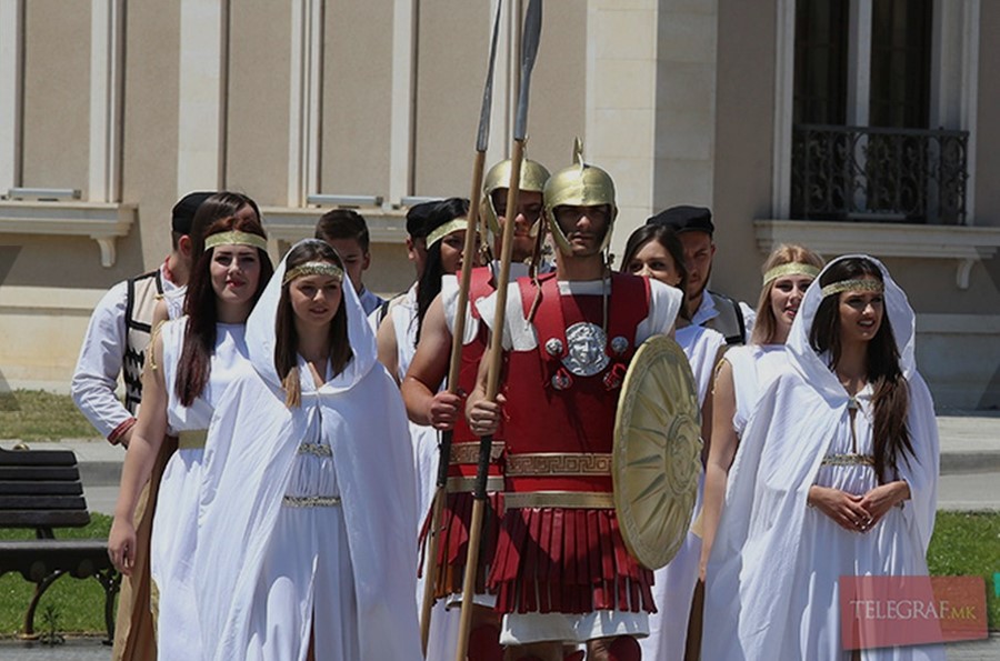 Повечето от момчетата са облечени като "воини от фалангата на Александър Македонски, партизани и комити", а момичетата са "стокмени по античка мода".