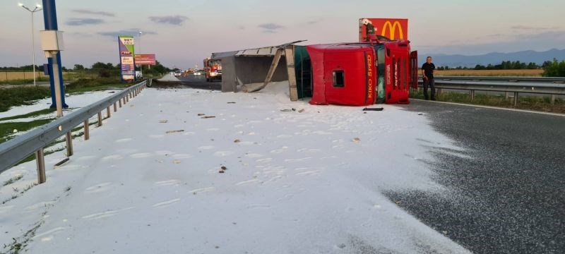 Товарен автомобил, управляван от гражданин на Република Северна Македония, се е обърнал в района на 86-ти километър от АМ "Тракия", в платното по посока за София