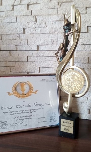 Припомняме,че тази година Елица Камбурова участва на 7 конкурса и спечели 8 златни медала, Голямата награда на гр.Банкя и безапелационната ''Гранд при'' на конкурса ''Полските щурчета''.