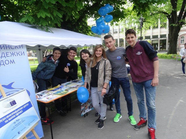 По повод 9 май – Ден на Европа, Информационният център на евродепутата Мария Габриел, Регионална библиотека „Любен Каравелов“ и Младежкият парламент към Общински младежки дом организираха информационен щанд под мотото „Аз съм европеец“.