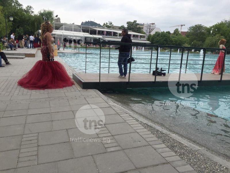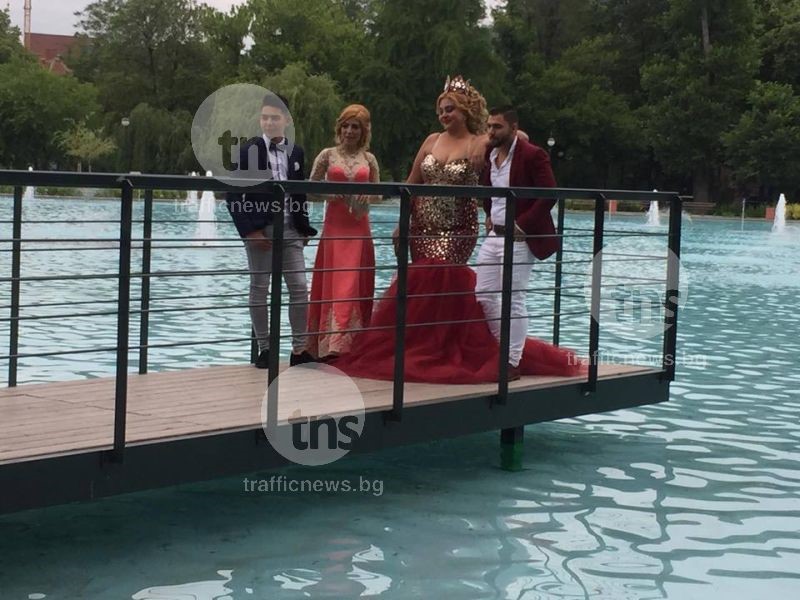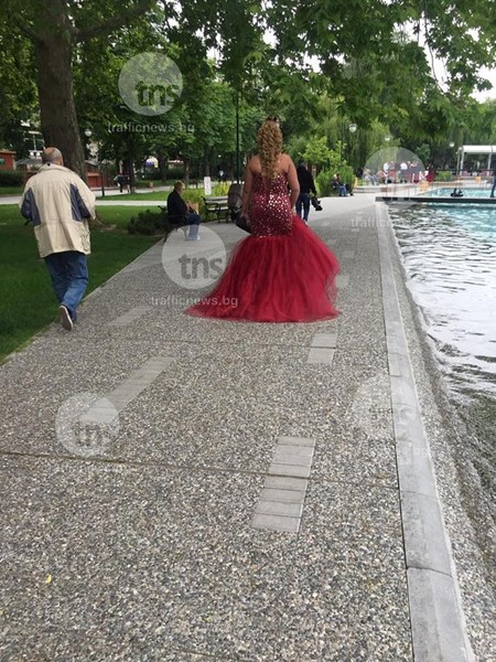 Те предпочетоха парка и водния атракцион за декор на фотосесията си за деня на завършването. Колоритна зрелостничка с червена рокля тип русалка позираше на моста в езерото.