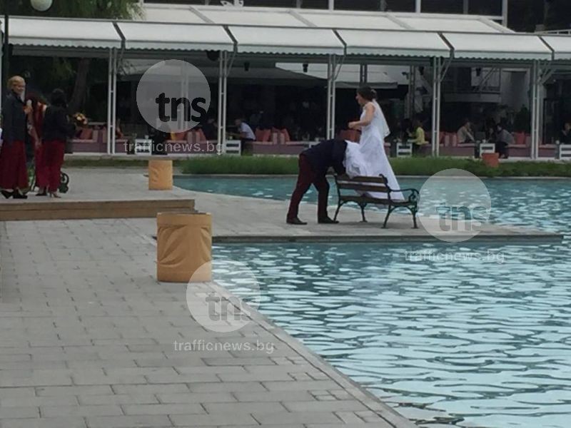 В същото време Пеещите фонтани за декор, но на сватбения си ден избра и млада двойка от Пловдив. Двамата влюбени се снимаха върху пейка, а булката вместо с токчета, беше обута с гуменки.