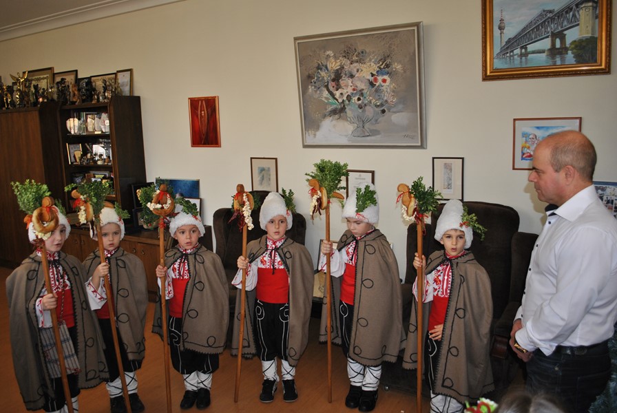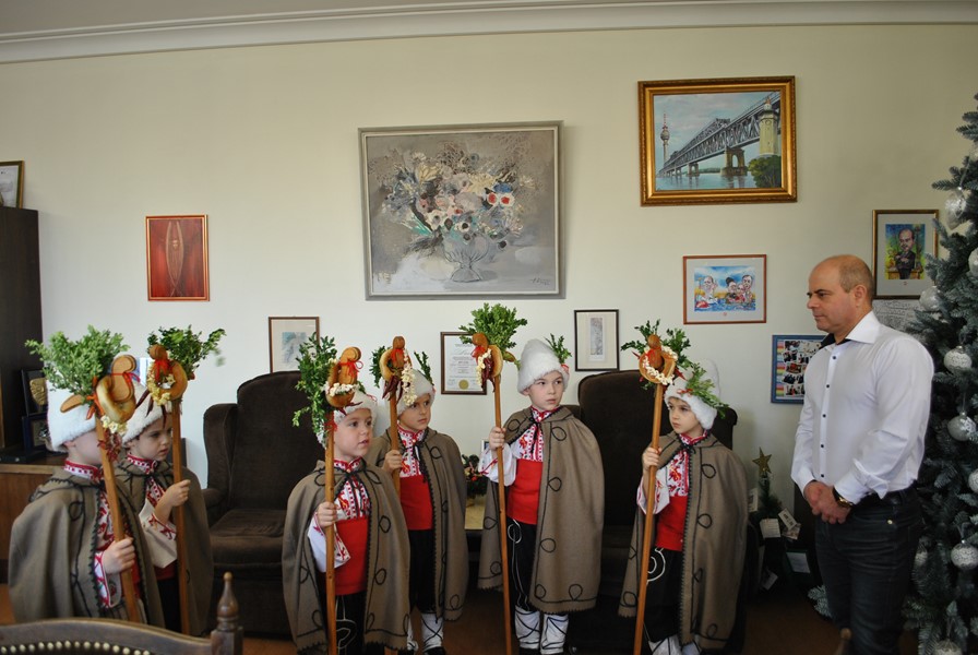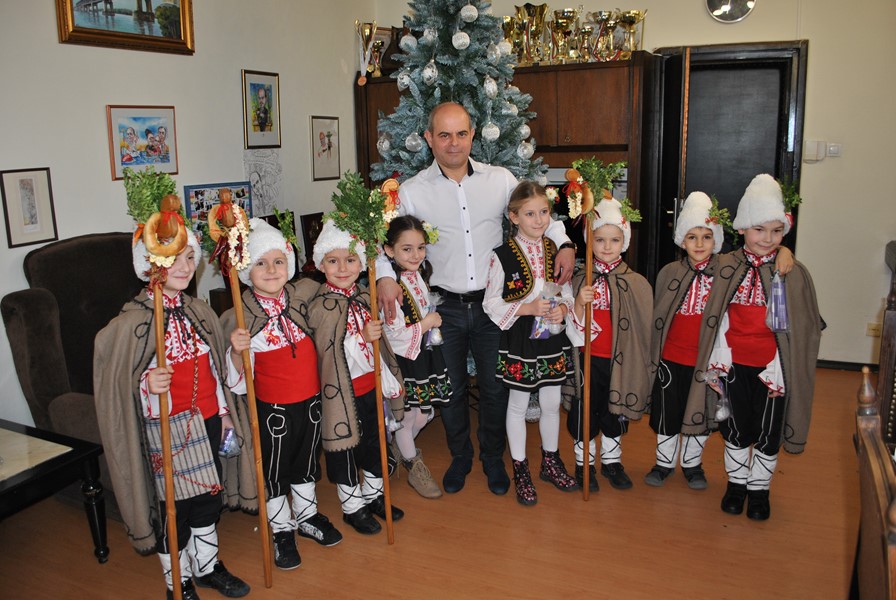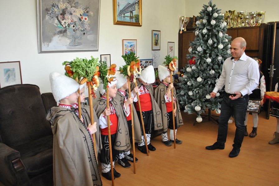 Коледари от детска градина „Чучулига“, заедно със свои преподаватели и с директора на учебното заведение г-жа Скарлет Гвоздейкова, гостуваха на кмета на Община Русе г-н Пламен Стоилов.