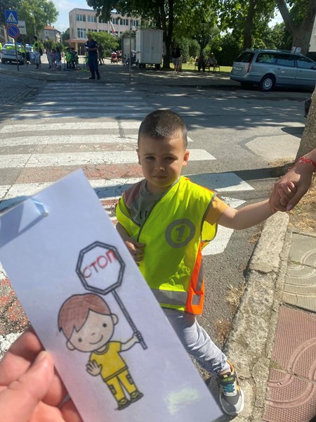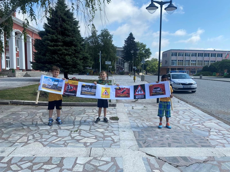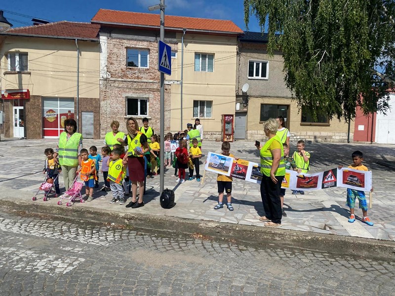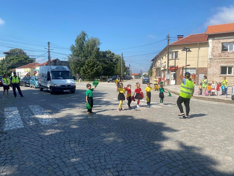Полицаите от РУ - Две могили и малчуганите от Детска градина „Св. св. Кирил и Методий“ заедно напомниха на водачите, че трябва да са отговорни зад волана. Малките „полицаи“ закачаха на огледалата за обратно виждане листовки, които приканват шофьорите да пазят децата на пътя.