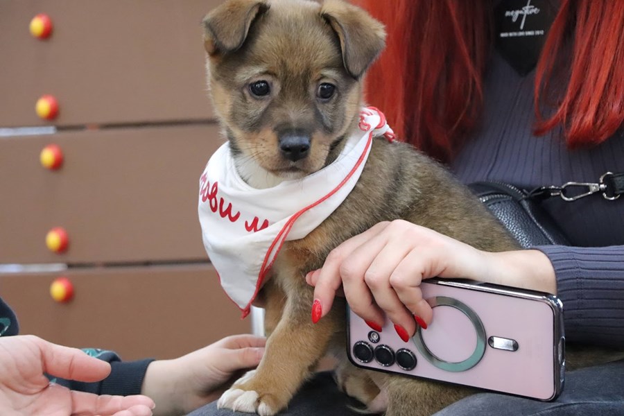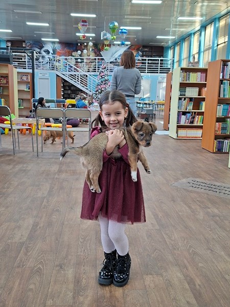 Щастливецът е кученцето Максимус – най-малкият посетител в Детски отдел "Библиотечко" днес. То беше част от съвместната инициатива на библиотеката и Общински приют – Русе, която дава възможност на гражданите да се запознаят с четириногите в нестандартна обстановка.