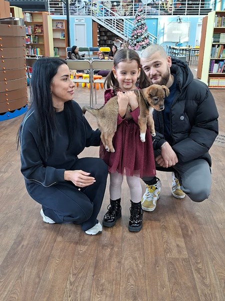 Истинско коледно чудо се случи днес в Регионална библиотека "Любен Каравелов" в Русе. Младо семейство отвори дома и сърцето си за едно от бездомните животни, гостуващи в културната институция, и го осинови на място.